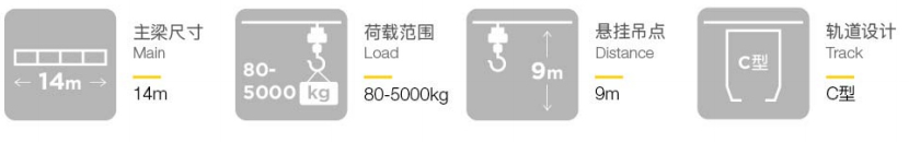 起重量在250kg-2000kg之間,主梁總長可達(dá)10m;