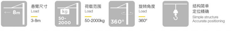 旋臂起重機(jī)提供了對(duì)近圓形工作區(qū)域內(nèi)良好的工作覆蓋,并支持工具平衡器、氣動(dòng)平衡器、真空提升工具和葫蘆等;